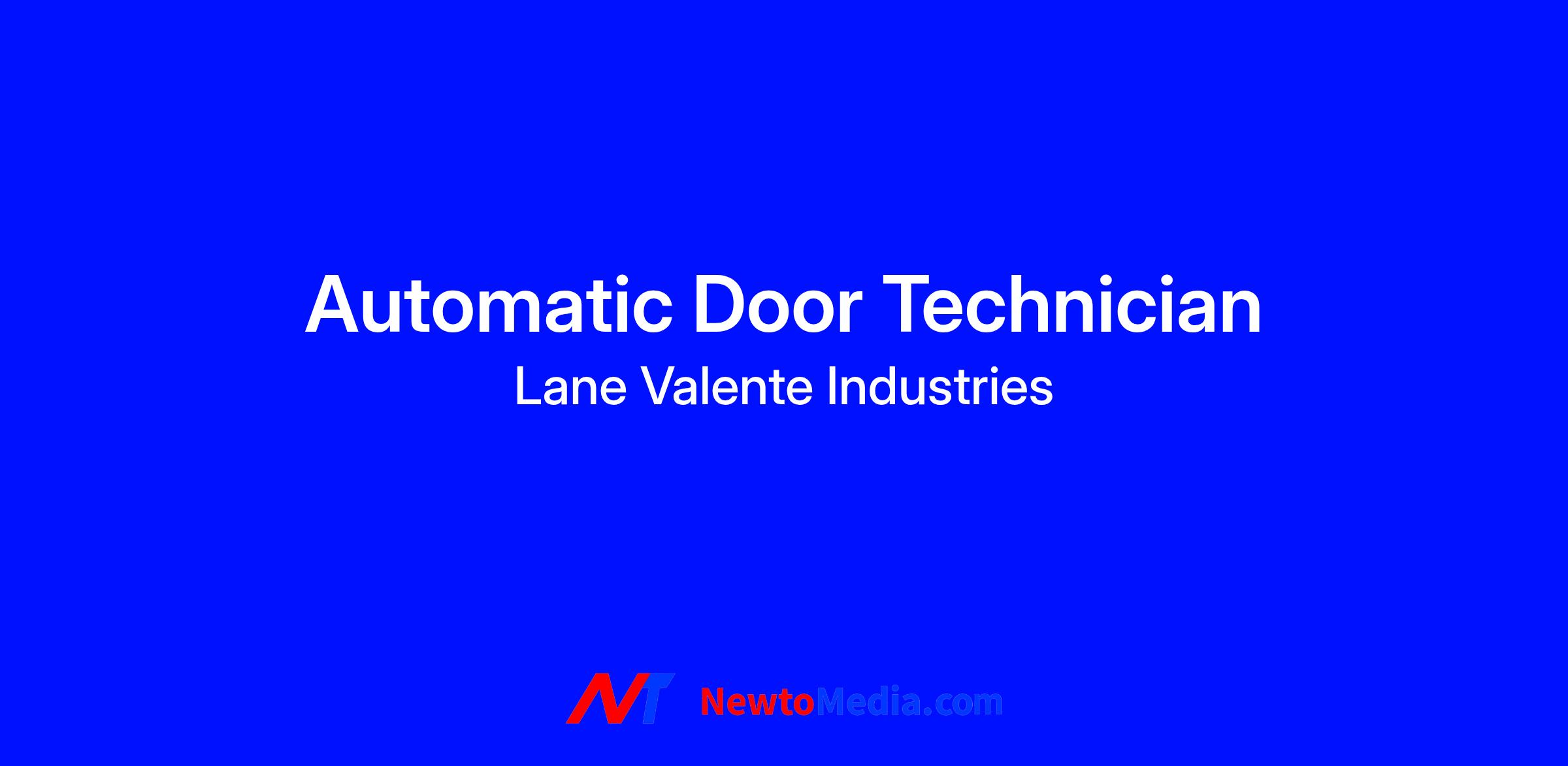 CURRENT OPPORTUNITY: Automatic Door Service Technician Experienced technician for service of automatic doors. AAADM certified preferred. Ability to perform repairs/replacements of ADA operators, manual and swing doors, door closers, pivot assemblies, panic hardware, hollow metal, storefront and automatic folding, swing, sliding doors.