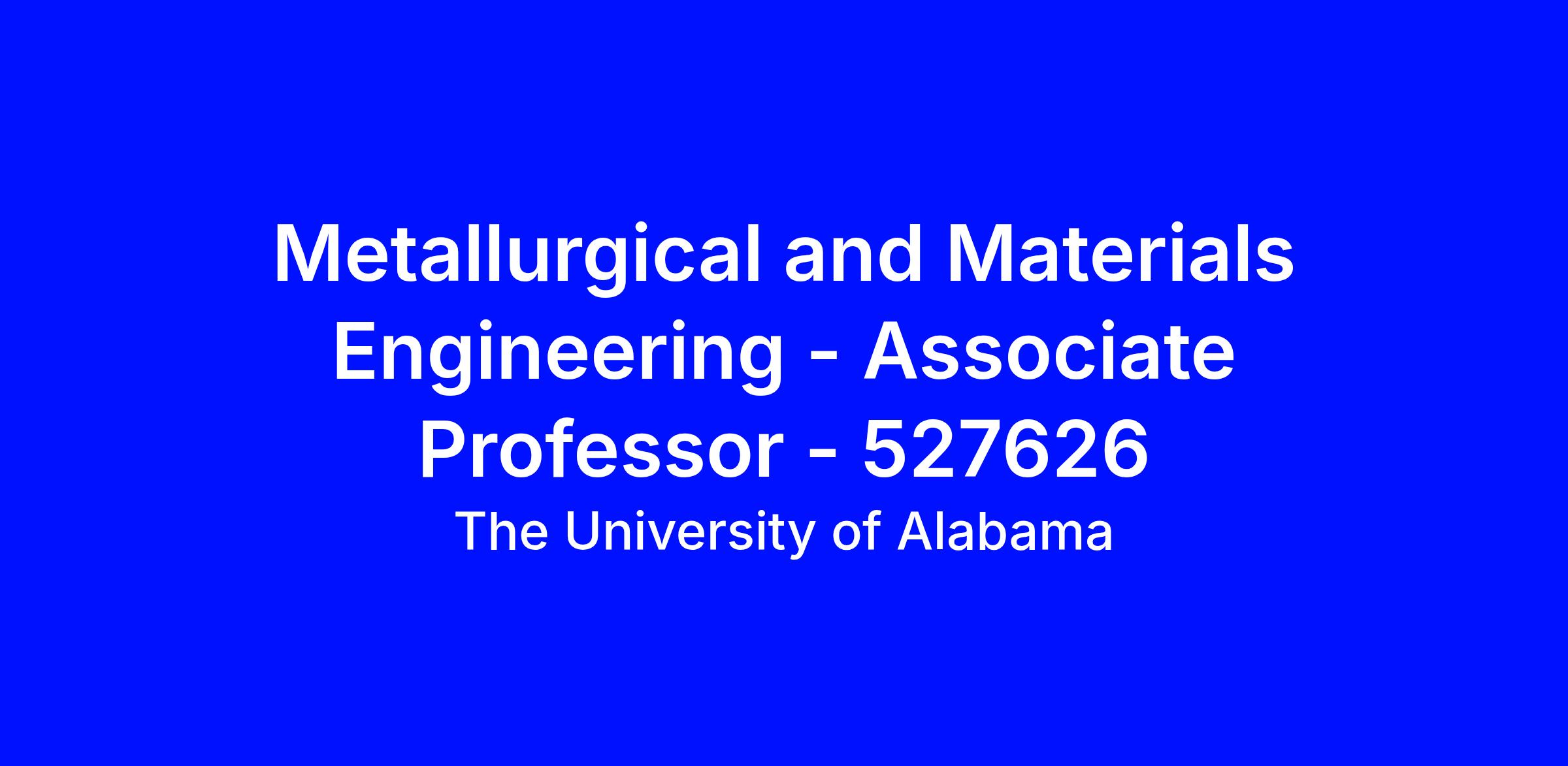 The Department of Metallurgical and Materials Engineering (MTE: https://mte.eng.ua.edu/) and the College of Engineering (CoE: https://eng.ua.edu/) at The University of Alabama (UA: https://ua.edu/) invite applications for tenure-track and tenured faculty positions at all ranks, including Assistant, Associate, and Full Professor levels, within the MTE department.