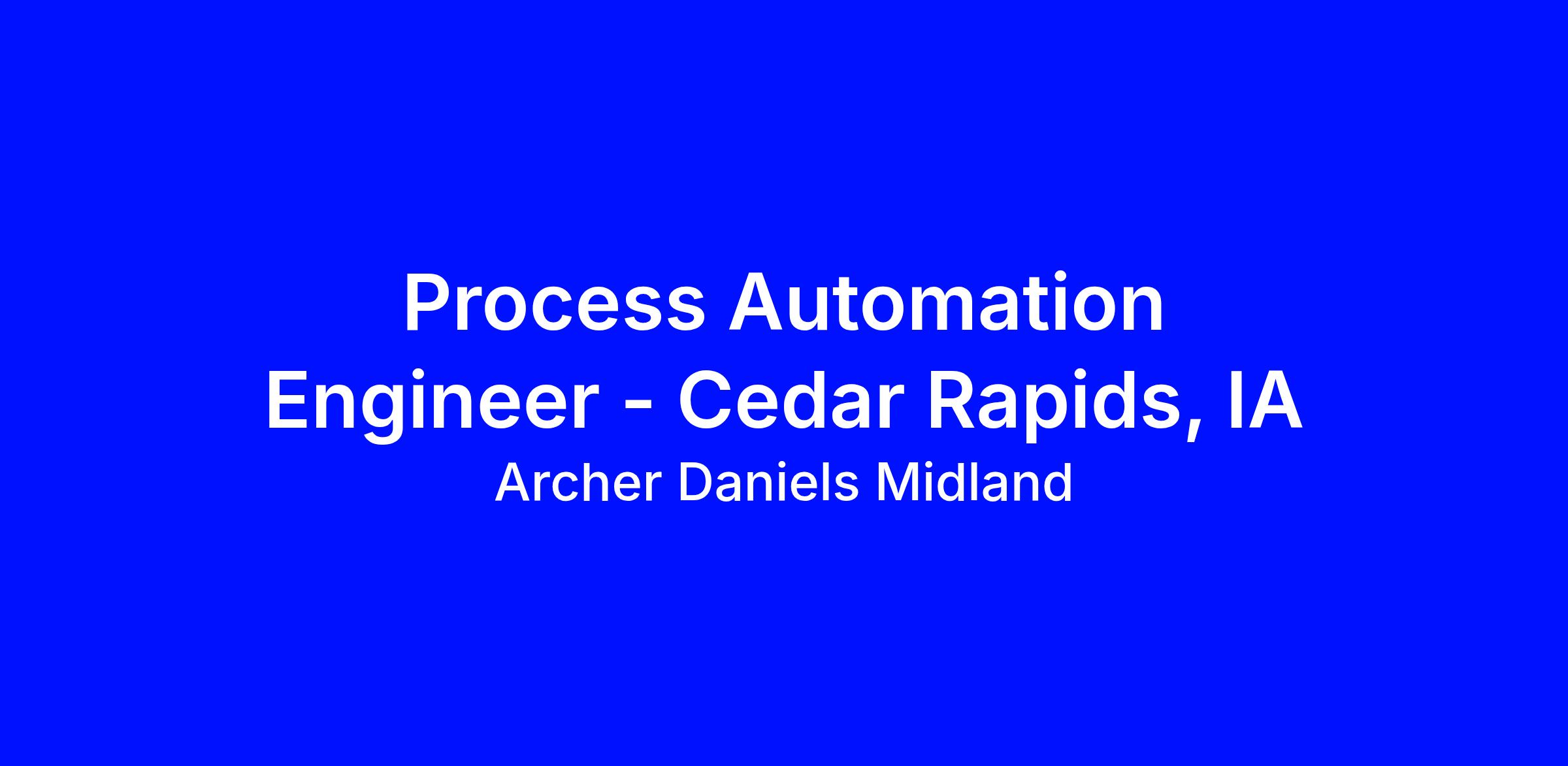 Process Automation Engineer – Cedar Rapids, IAThis is a full time, exempt position