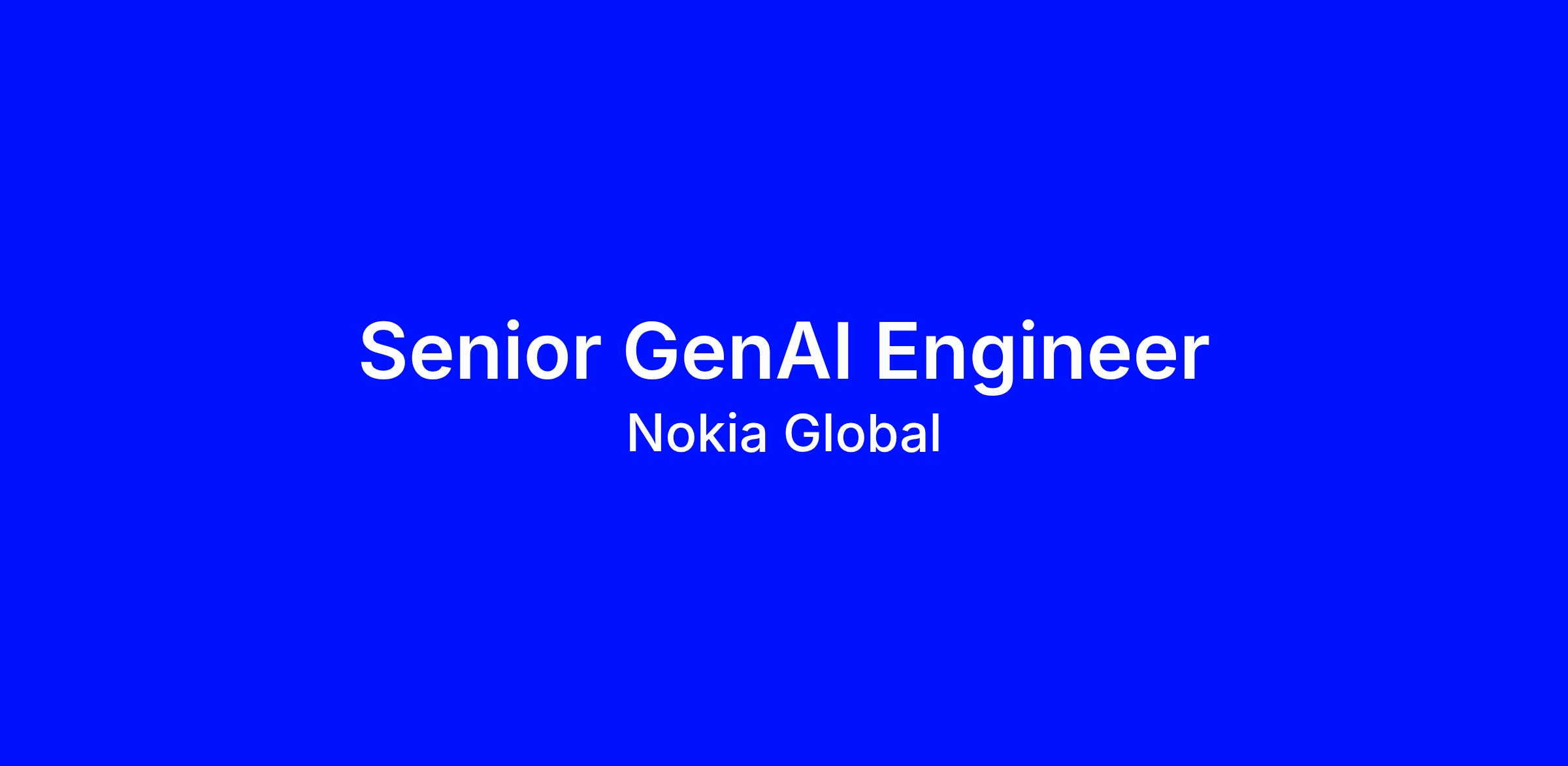 DescriptionSenior GenAI Engineer is pivotal in developing cutting-edge AI platforms and systems within MI—TS—R&I, directly influencing global technology standards and Nokia's future connectivity.